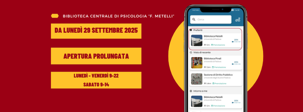 Da lunedì 29 settembre 2025 riprenderà l'orario prolungato: dal lunedì al venerdì 9:00-22:00 e il sabato 9:00-14:00