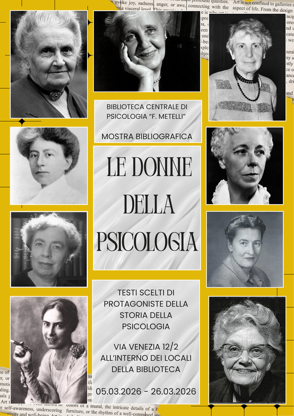 In occasione della Giornata Internazionale delle Donne, la Biblioteca Centrale di Psicologia Fabio Metelli presenta "Le donne della psicologia", una mostra bibliografica allestita nei locali della biblioteca dal 5 al 26 marzo 2026.